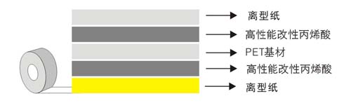 以聚酯薄膜為基材,涂與高性能的壓敏膠(丙烯酸膠粘劑或橡膠型膠粘劑)采用高克重,易沖形的離型紙,涂布精度達到±1um。具有優異的粘貼性,性價比高。